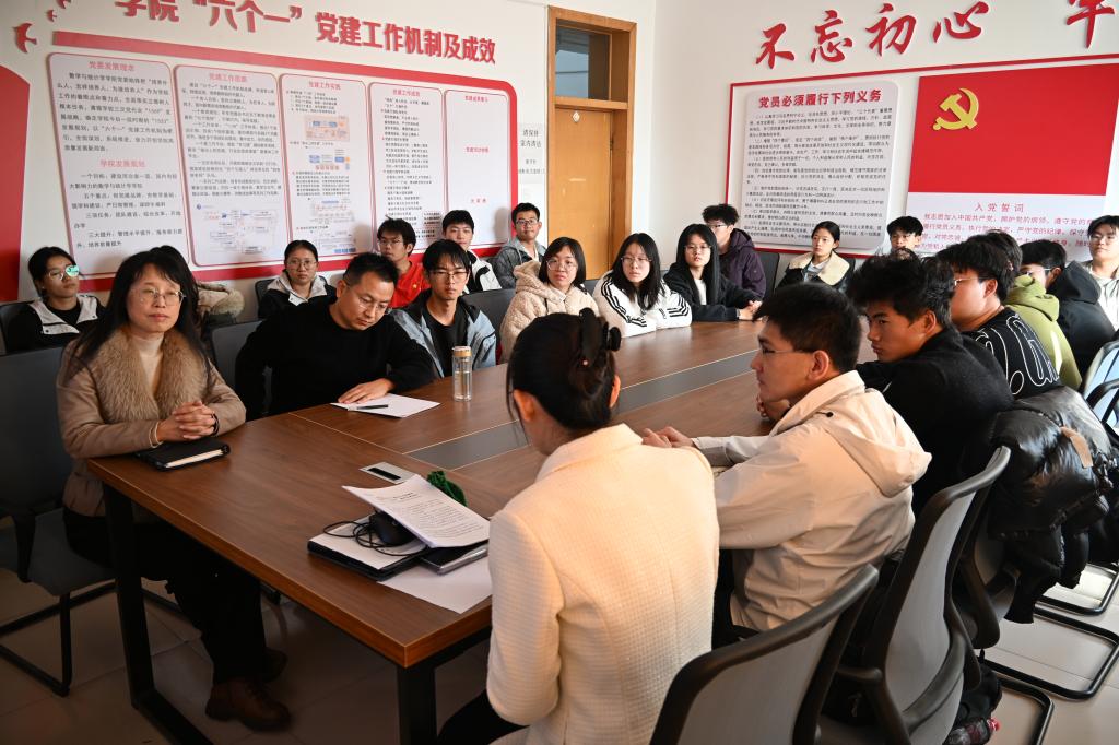 数学与应用数学系党支部书记工作室邀请河北师范大学张彭杰副教授做党的二十届四中全会精神宣讲,学院党委书记祃海霞、副院长王玲书、数学系党支部教师代表及数学专业学生代表40余人参加。活动由工作室负责人常之魁主持。