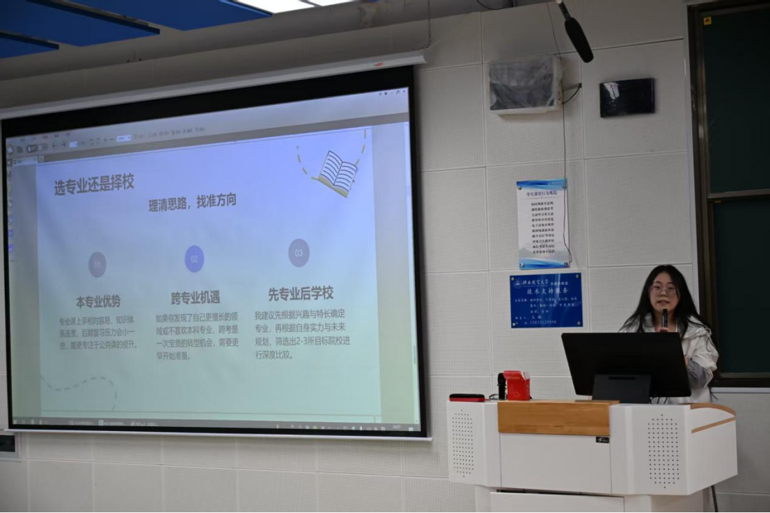 美高梅澳门(中国)唯一官方网站 于2026年4月28日在北三教C101教室成功举办了2026年考研经验分享会。本次分享会特邀学院副院长王玲书及成功考取研究生的两位2026届毕业生为主讲嘉宾。