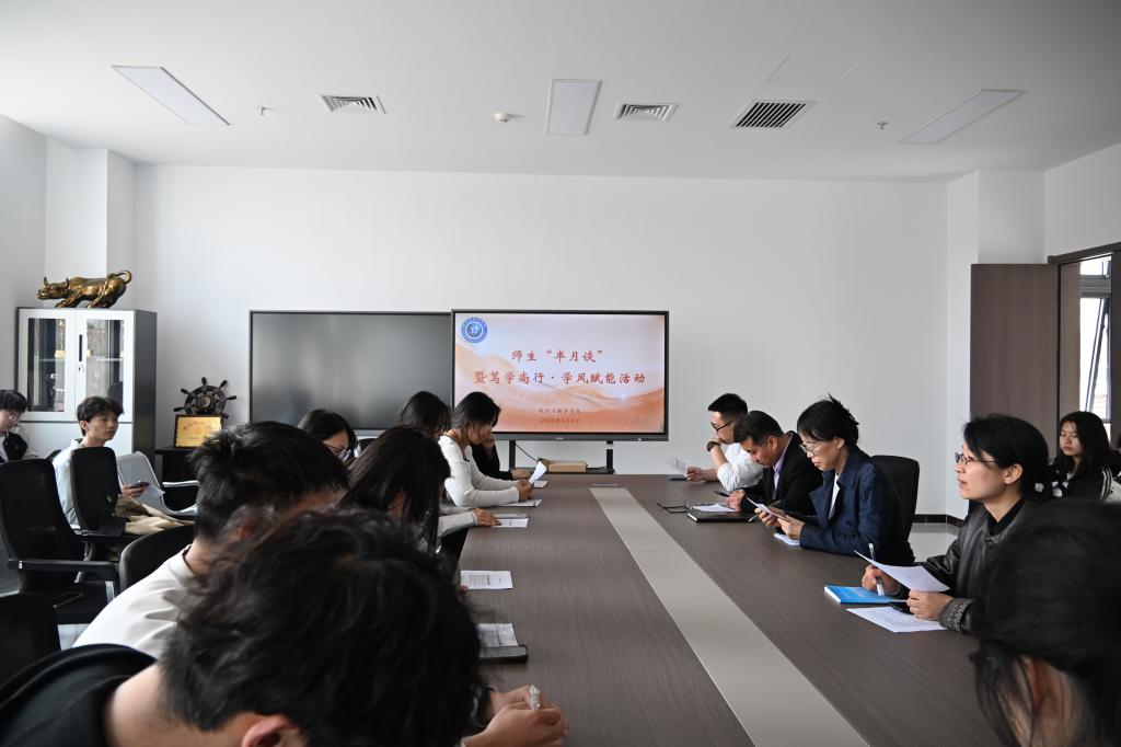 在数字楼377会议室举行师生“半月谈”暨“笃学尚行·学风赋能”学风建设专题活动。学院党委书记祃海霞、党委副书记路荣、副院长张良勇、团委书记王洋、辅导员姬孟丹及大一大二各班班长、学习委员共同参加。